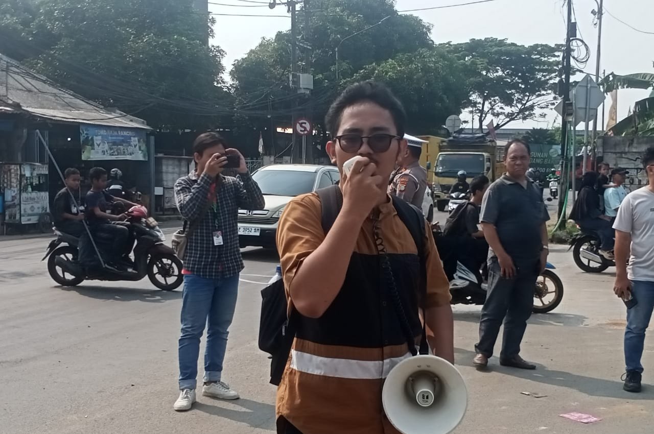 Koordinator Aktivis dan Warga Terdampak TPA Jatiwaringin saat Melakukan Orasi