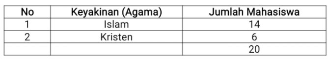 Dari data tersebut terlihat bahwa mahasiswa beragama Islam merupakan mayoritas, yaitu sebanyak 14 orang, sementara mahasiswa beragama Kristen berjumlah 6 orang. Komposisi ini menggambarkan realitas multikultural di lingkungan kampus, di mana keberagaman tetap menjadi bagian penting dari dinamika sosial mahasiswa. Berdasarkan hasil kuesioner, seluruh responden menunjukkan pemahaman dasar yang baik terhadap konsep toleransi beragama.