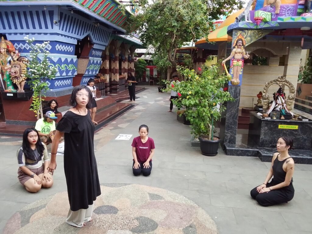 Sejumlah seniman sedang menampilkan pertunjukan di Kuil Durga Ma, Kamis (16/10) 2025 (foto/istimewa).
