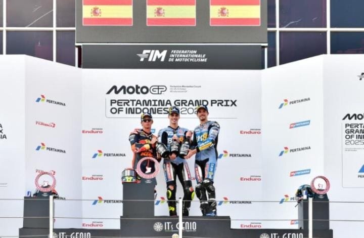 LOMBOK, PUSAT BERITA – Rider BK8 Gresini Ducati Fermin Aldeguer berhasil keluar sebagai pemenang seri ke-18 MotoGP 2025 pada ajang Pertamina Grand Prix of Indonesia yang digelar di Pertamina Mandalika International Circuit, Lombok, Nusa Tenggara Barat (NTB), Minggu (5/10).