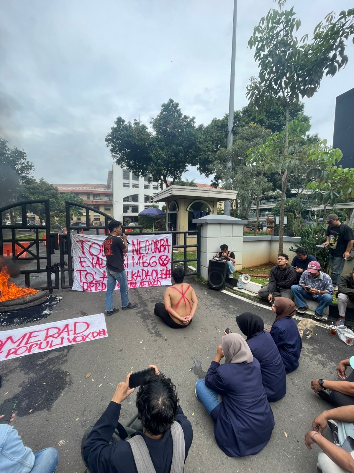 ‎Tidak hanya itu, aksi tersebut juga mengangkat persoalan anggaran proyek Makan Bergizi Gratis (MBG) yang dinilai sebagai pemborosan dan miliki sarat akan masalah tata kelola.