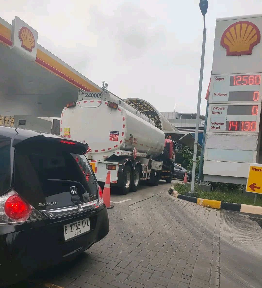 Antrian SPBU Shell Power dan pengisian BBM dari Pertamina